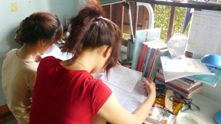 Thuận lợi hơn các sĩ tử khác, sĩ tử Lục Văn Ngọc (HS Trường THPT Lắk, huyện Lắk, Đắk Lắk) có anh trai là SV năm 3 ngành Tài chính Ngân hàng - Trường ĐH Tây Nguyên) kèm cặp. Trong căn phòng trọ oi bức, hai anh em vẫn miệt mài ôn luyện, giải đề thi. Ngọc cho biết: “Không phải cứ đến lò luyện học cấp tốc là hay, tùy sức học và cách học mỗi người mà chọn phương pháp ôn luyện phù hợp nhất. Đã học 9 tháng ở trường rồi nên khoảng thời gian này em chỉ tập trung ôn luyện lại các dạng bài tập chứ không học mới. Cái gì không hiểu thì nhờ anh trai chỉ cho….”.
